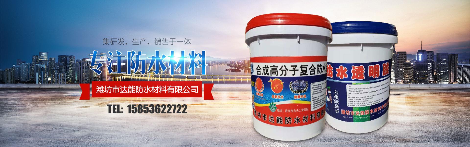 濰坊市達能防水材料有限公司是一家從事防水卷材、防水涂料的公司。主營產品:防水卷材(改性瀝青、聚乙烯丙綸高分子自粘防水卷材),防水涂料(高聚物改性瀝青、非固化、JS防水涂料)外墻防水透明膠、丙烯酸鹽注漿液、水固化注漿料、丁基膠帶、丁基熱熔膠、液體卷材、免砸磚研發、生產、銷售于一體的現代化防水涂料生產廠家,材料銷往山東、江蘇、新疆、四川、內蒙、山西、甘肅、安徽等省份。 公司本著“誠信、共贏”的經營理念,為客戶、為合作伙伴提供好的產品、服務和價值,不忘社會責任,堅守市場法則,為實現可持續性和跨越式發展,創建筑防水新紀元。
